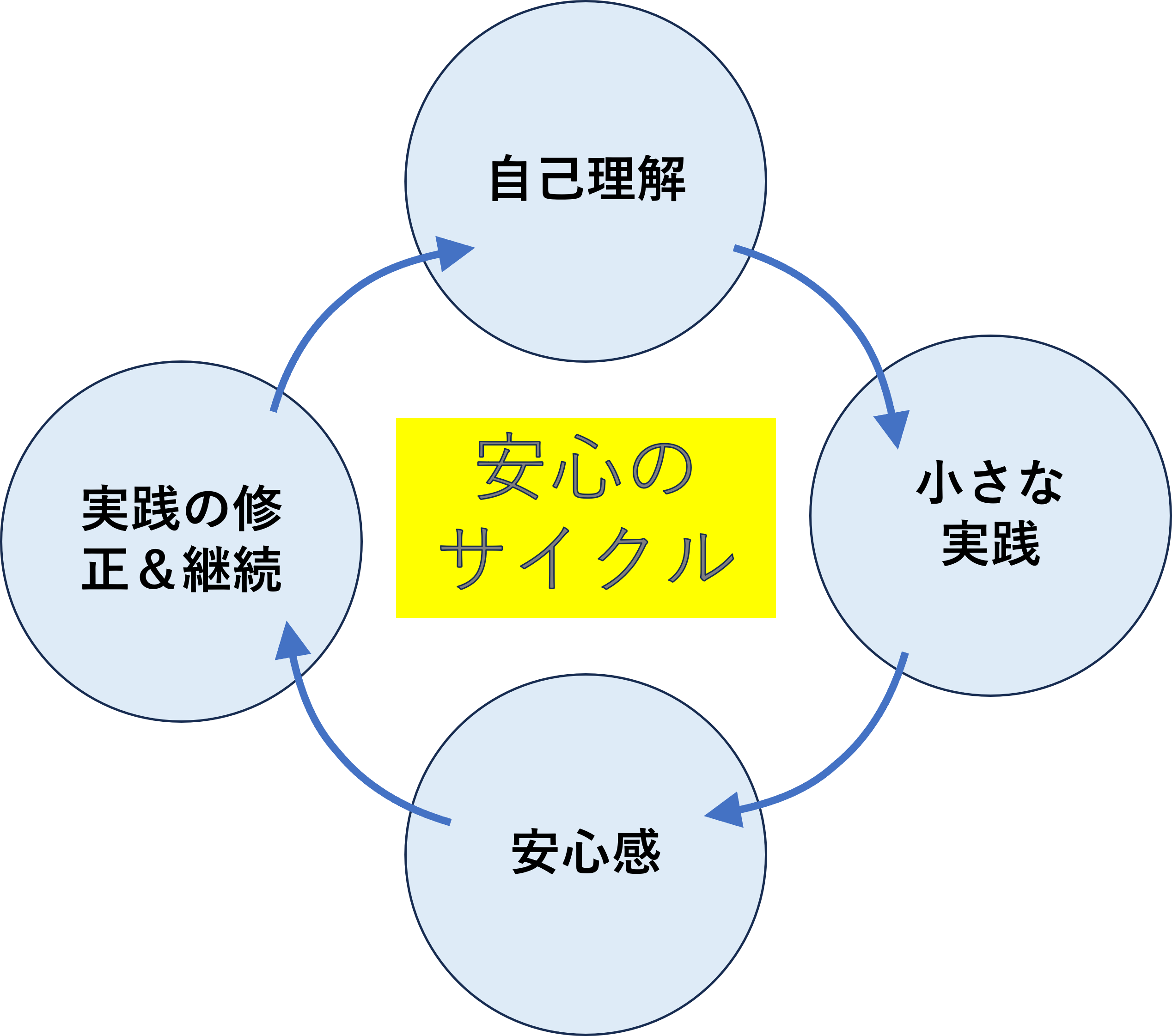小さな実践に移すことで前進を実感し、安心感を得て、さらに実践から得た気づきによって自己理解が深まる。