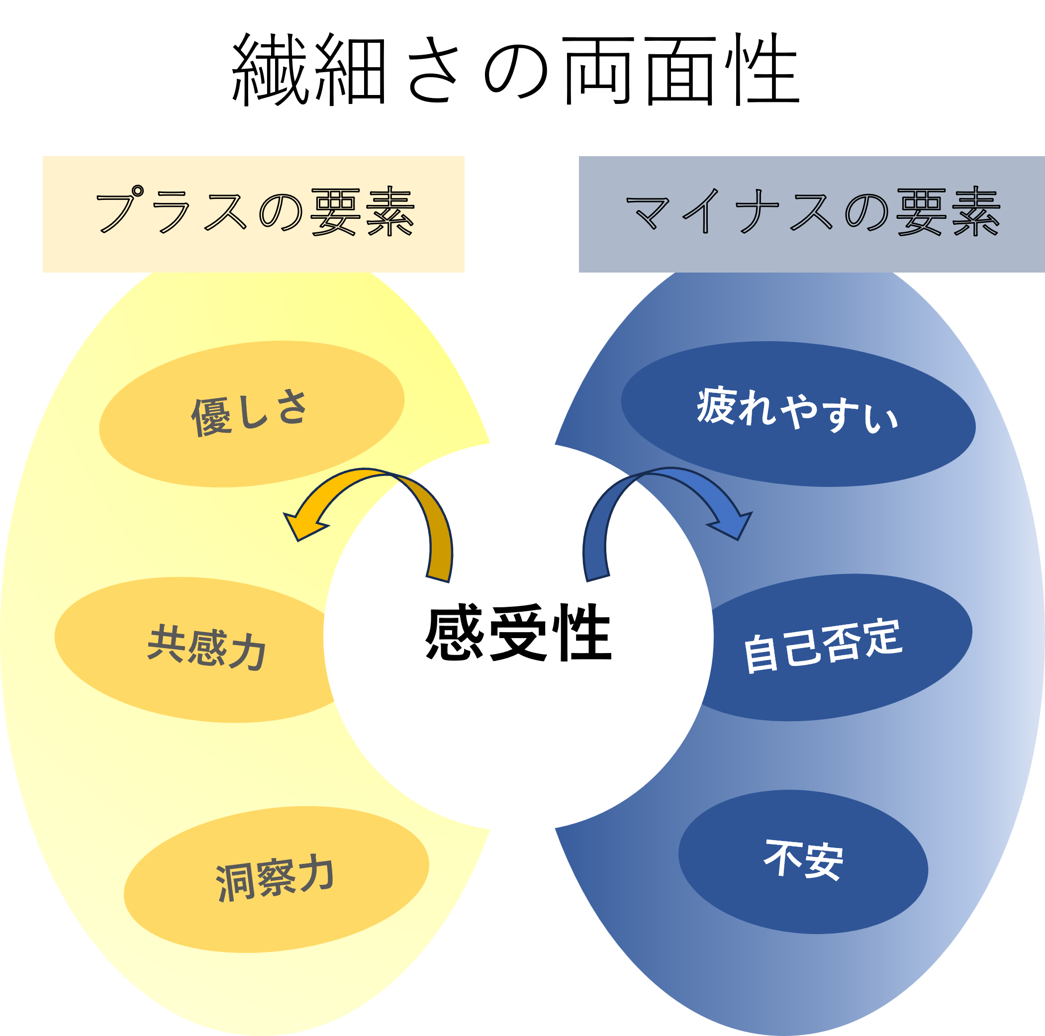 そのため、自分に合う環境下におかれると自分の長所を引き出せて心が生き生きとしますが、合わない環境下では心が疲弊してしまい自己否定にも陥ってしいます。